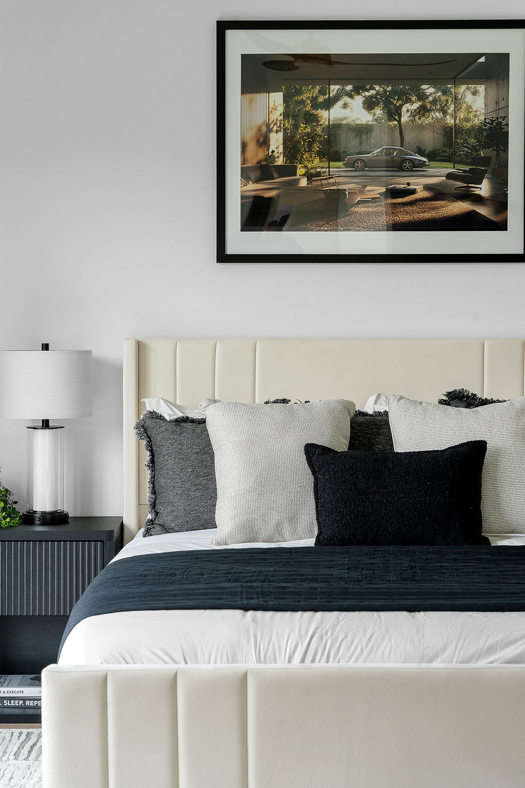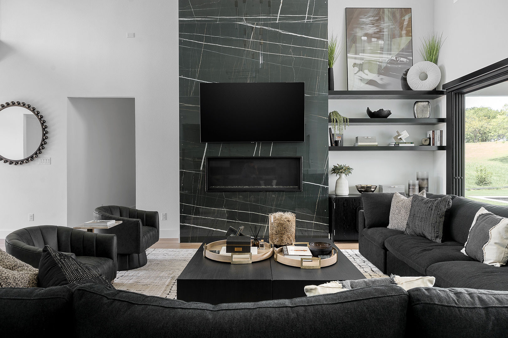 Project No. 118 An interior design project for a 4,600 sq ft home, crafted in a masculine modern minimalist style with sharp lines, rich materials, and timeless elegance.